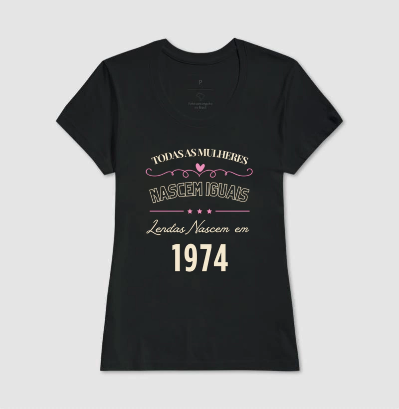Todas as mulheres nascem iguais, mas as verdadeiras lendas nascem em 1974. Esta camiseta é mais do que uma peça de roupa; é uma celebração da sua jornada, da sua força e da sua história. Feita com tecido macio e durável, garante conforto e estilo em qualquer ocasião.