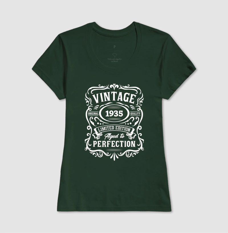 Se você é um amante do estilo vintage e aprecia o charme das décadas passadas, esta camiseta é perfeita para você! Com a estampa 'Vintage 1935 - A idade da perfeição', esta peça não apenas celebra o ano de 1935, mas também todo o encanto que vem com a passagem do tempo.